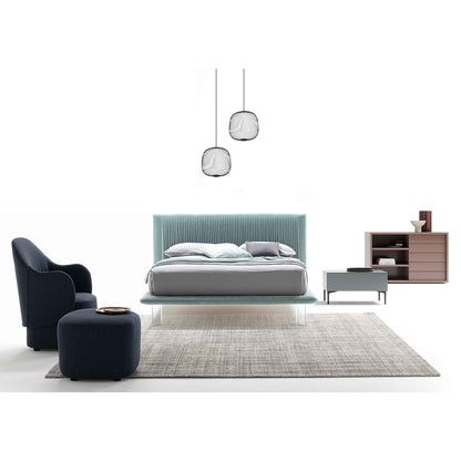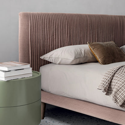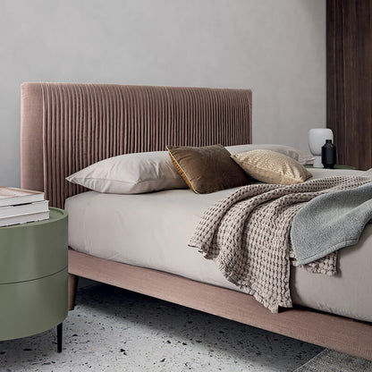 Upholstered Bed with Removable CoverDiscover the elegance of the Plisse bed, featuring a unique headboard adorned with thick vertical pleats. Its fully removable cover and upholstered bed frame, matched with varying feet materials and finishes, offer versatility and style. Elevate your bedroom's character with the perfect pairing of the Ronda bedside table, making a statement that reflects your personality.