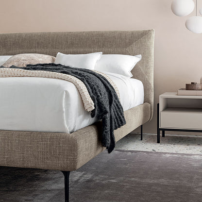 Bed with Removable Cover in Fabric or Eco-leatherYou have the option to select the Sentempa double bed with upholstery in either fabric or eco-leather. In both variations, the bed features removable covers for easy maintenance and cleaning. Additionally, you can choose between a storage base or traditional feet to support the bed.
