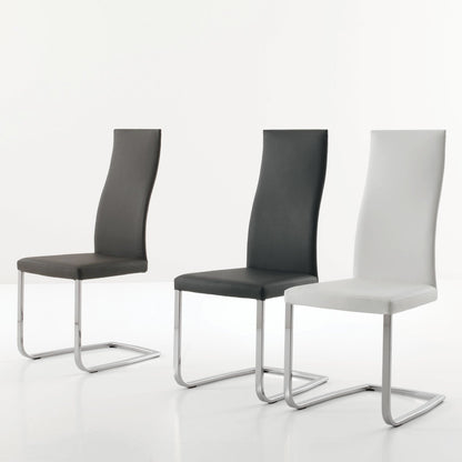 The chair's chromed base not only adds a touch of modernity but also reflects the dynamic nature of contemporary spaces. Paired with the luxurious leather or eco-leather finish in neutral tones, the Slim chair defines a flawless style that effortlessly enhances the overall aesthetic of your living area. Experience the perfect fusion of Italian craftsmanship and contemporary design with the Modern Chair Slim, an elegant choice for those who appreciate both form and function in their furniture.