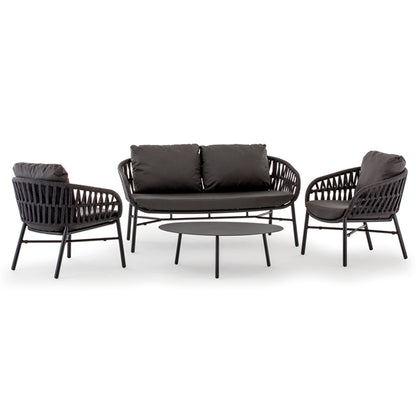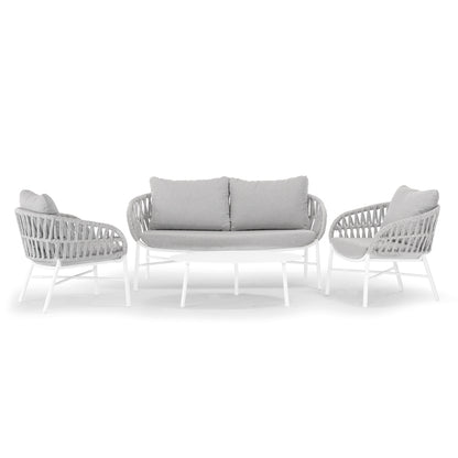 Create a serene and stylish outdoor retreat with the Tahiti Outdoor Sofa Set, a perfect blend of Italian craftsmanship, elegant handwoven rope detailing, and a sturdy aluminium frame. Designed for both comfort and sophistication, this modern lounge set includes a two-seater sofa, two armchairs, and a sleek coffee table, making it an ideal choice for gardens, patios, terraces, and poolside settings. The plush weather-resistant cushions provide superior comfort, while the unique open-weave rope design adds a contemporary and inviting aesthetic.