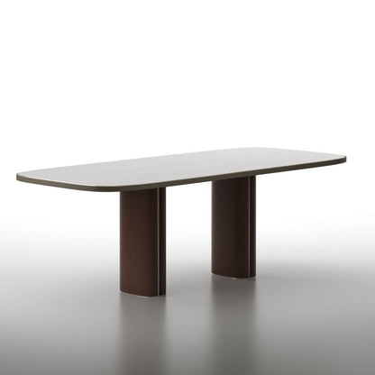 The Trafalgar Rectangular table is a sophisticated piece inspired by the grandeur of London’s Trafalgar Square and Admiral Nelson’s iconic column. Its design features a tabletop with elegantly beveled corners, supported by a sturdy wooden base accented with metallic inserts. This distinctive combination of materials and shapes creates a timeless and versatile table that adds a touch of history and elegance to any space.