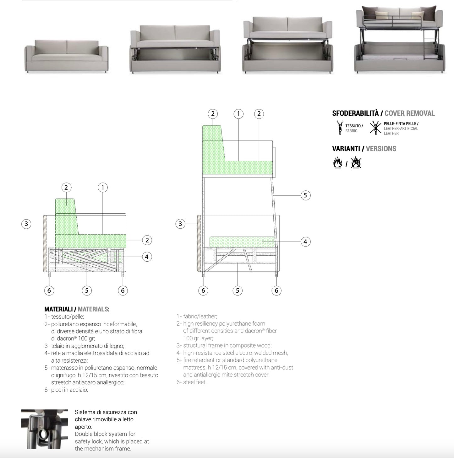 Ares guarantees maximum usability with its smooth and light opening mechanism, complemented by state-of-the-art safety features. This ensures not only a seamless transition between sofa and bed but also a secure and reliable experience for users. Ares is not just a piece of furniture; it is a testament to intelligent design, where form meets function to create a harmonious and adaptable living space.