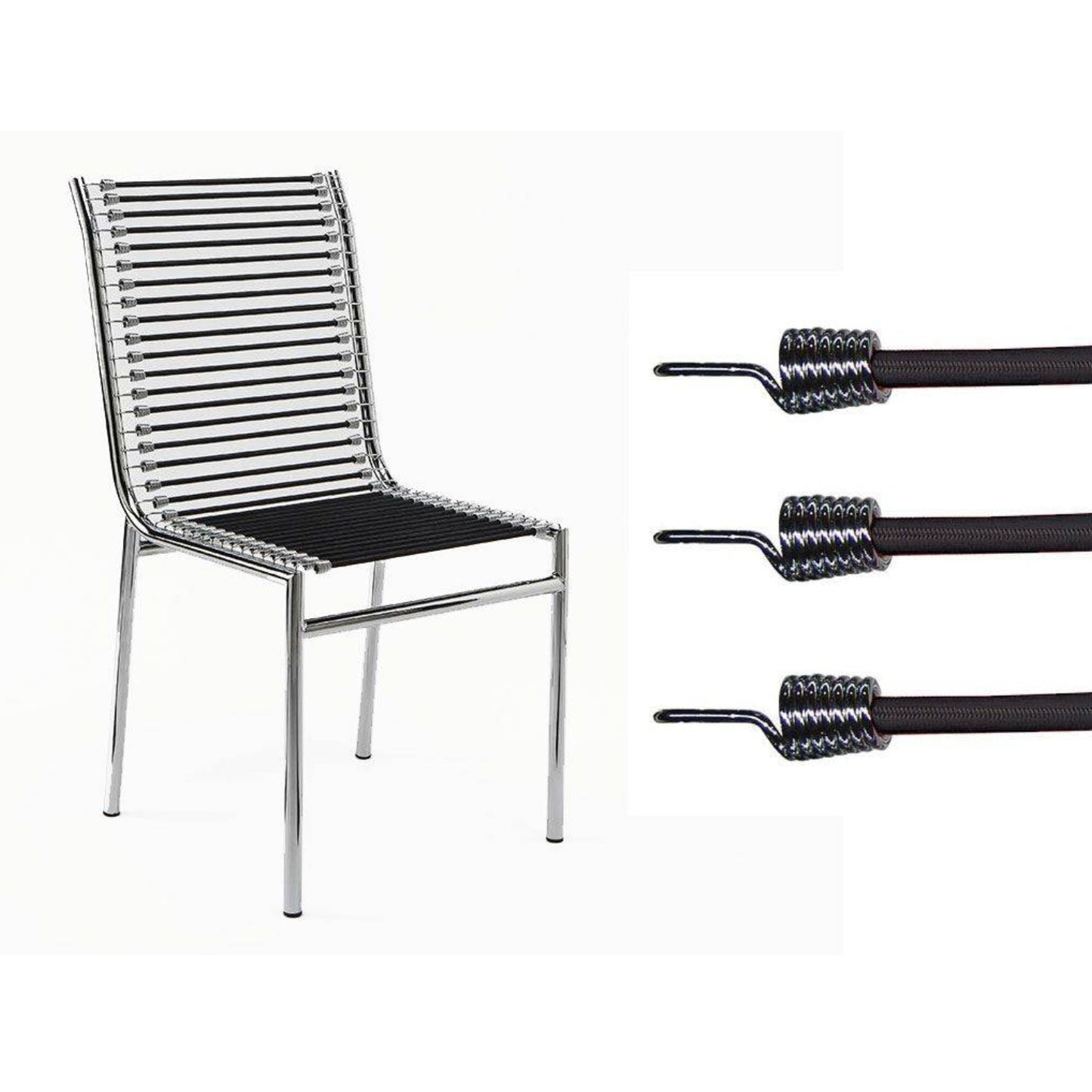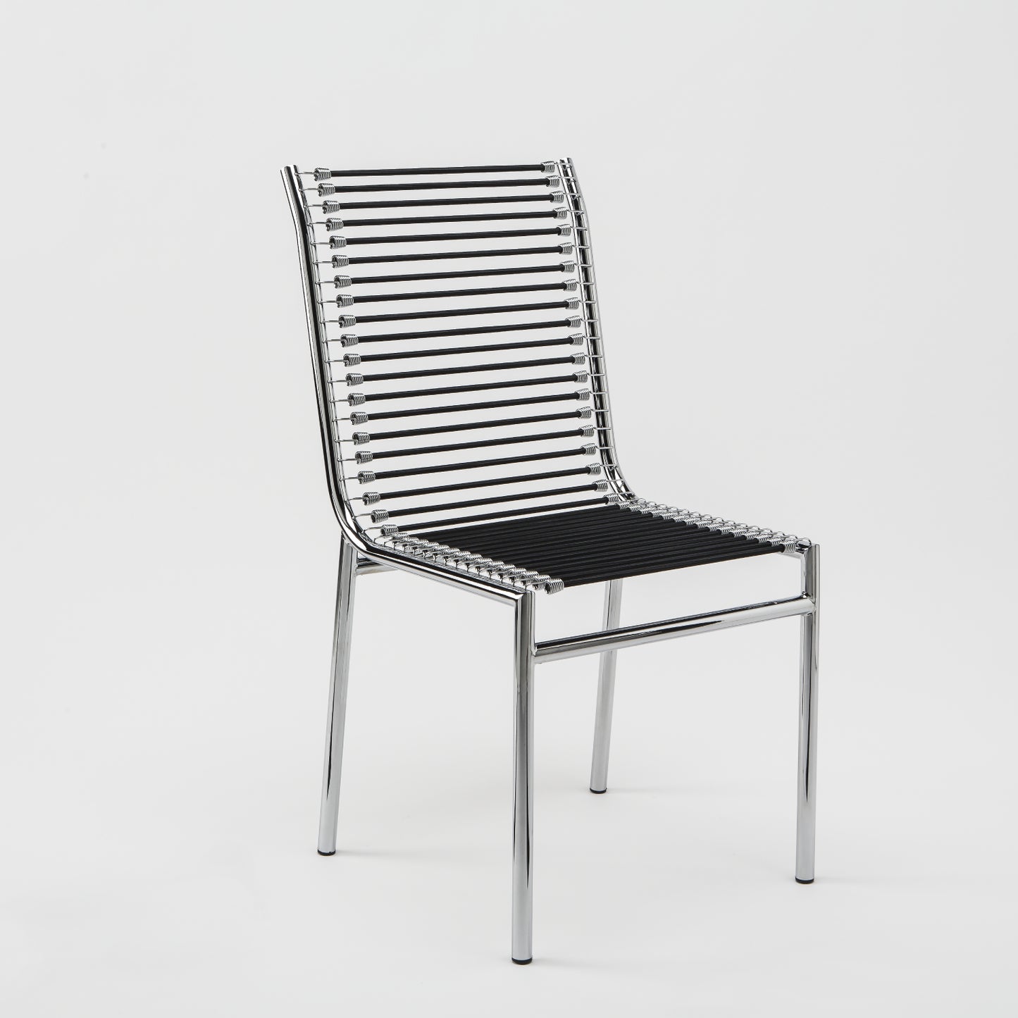 This chair features a unique design with a black-covered elastic rope seat and back, providing a perfect balance of comfort and style. The elastic rope not only adds a distinctive texture to the chair but also offers a flexible and supportive seating experience. Whether placed in a minimalist office setting, a chic dining room, or a cosy reading nook, this chair effortlessly elevates the ambience with its sophisticated design.