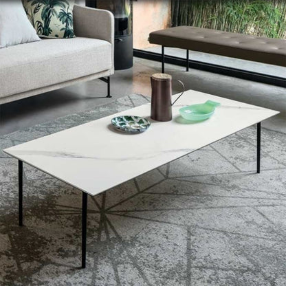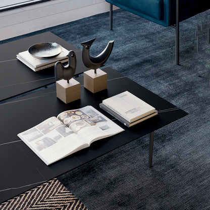 Azimut Coffee Table by Dall'Agnese - where simplicity meets contemporary elegance. This stunning piece of furniture effortlessly blends modern design with timeless appeal, making it a versatile addition to any living space. Crafted with meticulous attention to detail, the Azimut Coffee Table boasts a choice between luxurious ceramic stoneware or a warm wood top, both supported by sleek metal legs. The classic rectangular shape is available in both midi and maxi versions, allowing you to choose the perfect size for your room.