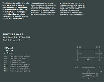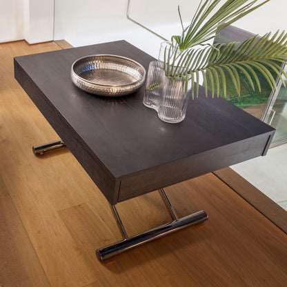 Introducing our convertible Compact coffee table redefines functionality. Crafted with a sturdy metal base and equipped with a precision-engineered gas mechanism, this table effortlessly transforms from a stylish coffee table to a practical home office desk. Its adaptable nature allows for seamless adjustments in height, catering to individual preferences, ranging precisely from 25 to 84 centimetres.