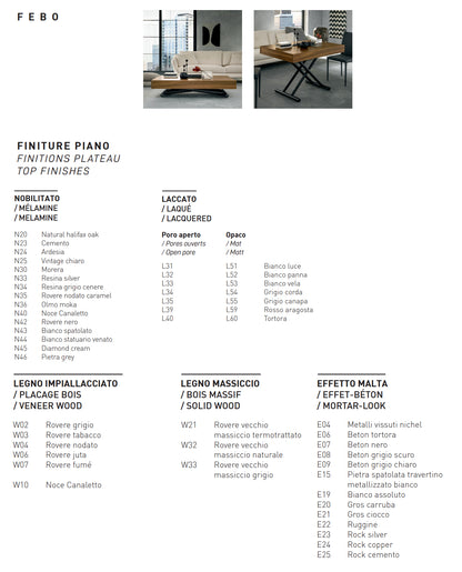 The synchronised opening mechanism effortlessly reveals two folding extensions, ingeniously expanding its surface for accommodating larger gatherings. Moreover, the retractable castors add a touch of convenience, enhancing mobility and functionality in your space. Febo by Altacom embodies the epitome of versatility and elegance, transforming seamlessly to meet the dynamic needs of your home, from intimate coffee moments to grand dining experiences.