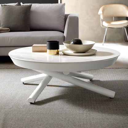 The Helios coffee table stands as the epitome of functional elegance, transcending the boundaries of conventional furniture. At first glance, its circular form captivates the eye, but it's the seamless transition from a captivating coffee table to an expansive dining platform that defines its ingenuity. Crafted with precision, the mechanism effortlessly extends, offering unrivalled comfort to both cherished family moments and gatherings with esteemed guests.