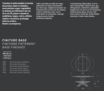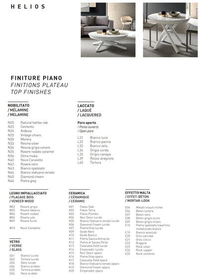 The metal base, an artful fusion of strength and grace, weaves a narrative of sophistication, its lines intersecting in a dance of aesthetics and practicality. Versatility is at the core of Helios, embodying adaptability with an adjustable height ranging from 36 to 75 centimetres, ensuring a tailored experience to match every occasion. Its round top, available in an array of finishes from melamine to ceramic effects, boasts not just beauty but also functionality.