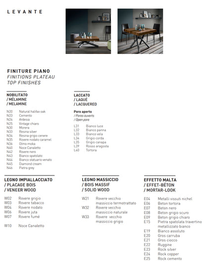 The square top, available in melamine, wood, or a captivating mortar effect, hosts two internal extensions, maximising usability. Enhancing its practicality, retractable wheels facilitate easy movement, while the ingenious design elevates any space, embodying the fusion of innovation and aesthetics. Experience the artistry and ingenuity of Levante - a centrepiece that embodies both form and function.
