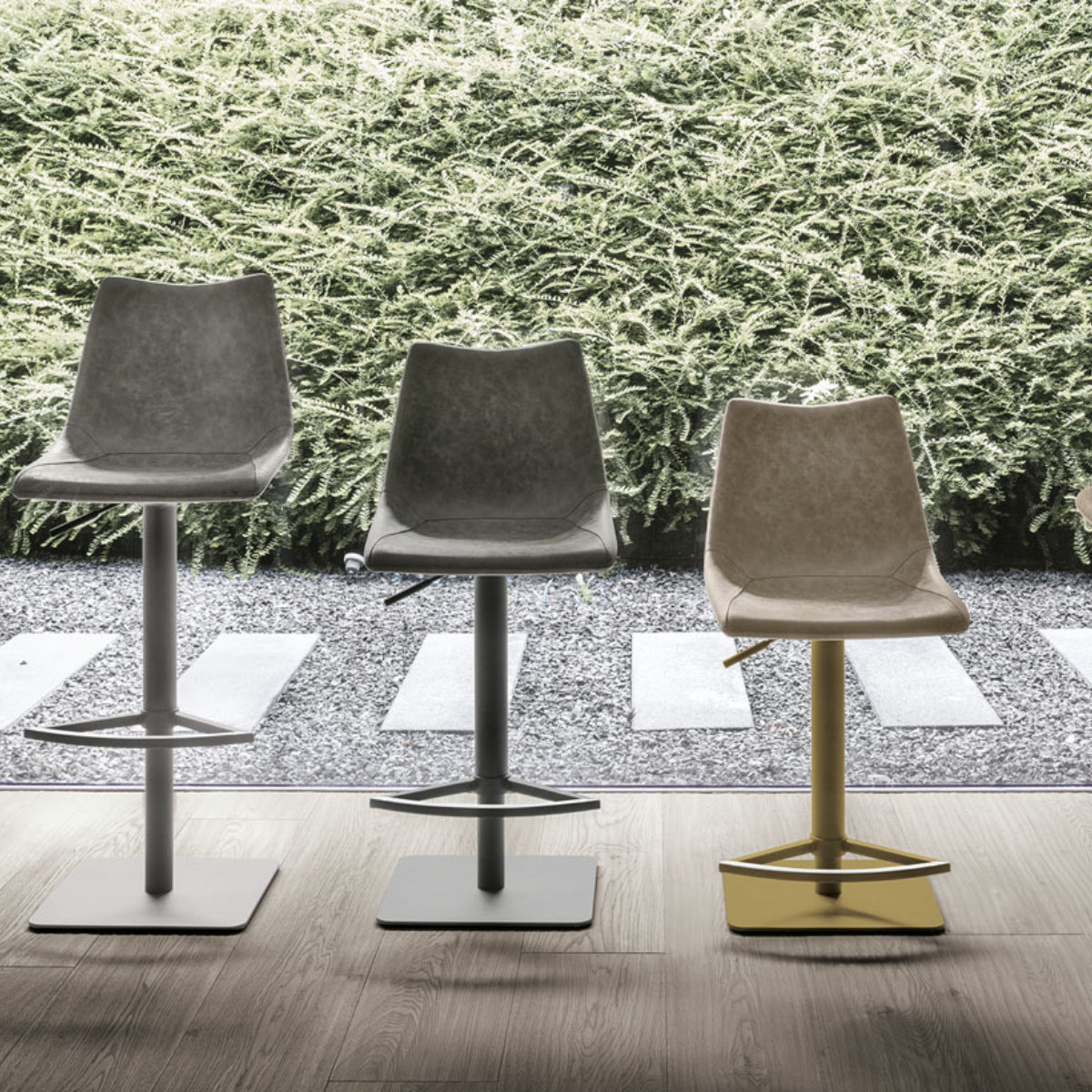 Introducing the STOOL MAIORCA, the epitome of modern elegance and versatility for your kitchen island or any contemporary space. This height-adjustable stool effortlessly combines style and functionality, making it the perfect addition to your home. With its sleek design and painted metal structure, the STOOL MAIORCA offers a sophisticated aesthetic that complements any decor. The upholstered seat, covered in luxurious Soft-Touch Vintage fabric, ensures both comfort and a touch of vintage charm.
