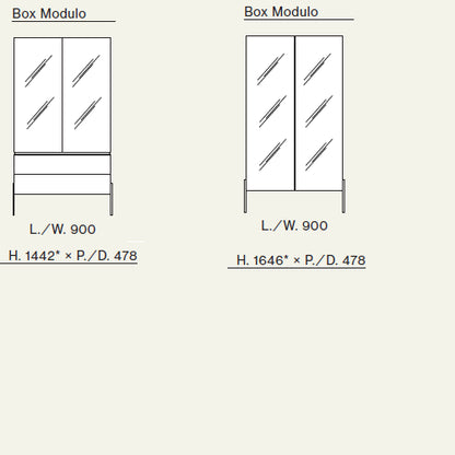 - Design details: Bronzed glass doors, glass shelving, burnished aluminium frame, Tiglio metal base