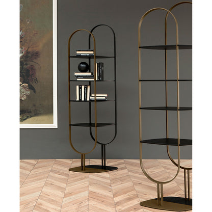 Crafted with meticulous attention to detail, the Sand bookcase features bronze and black lacquered arches that add a touch of sophistication to your reading sanctuary. The sleek shelves not only contribute to the unique design but also serve as a practical solution for displaying and storing your books in style.