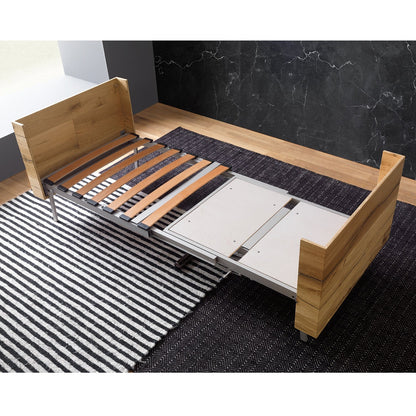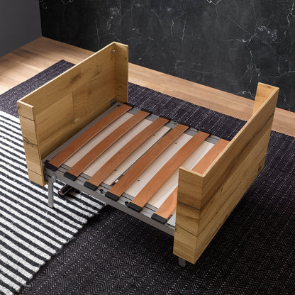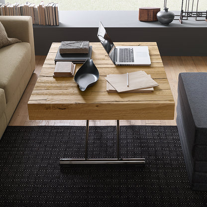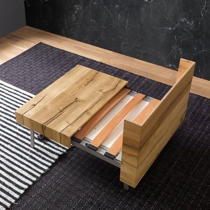 Tavoletto is the embodiment of innovation within Altacom's line of space-saving furniture. Crafted from authentic, aged natural oak, this versatile piece seamlessly transitions from a stylish couch table to a functional dining table, effortlessly evolving into a sophisticated single bed when needed. Its adaptability epitomises the essence of Italian craftsmanship, inviting warmth and elegance into any space.